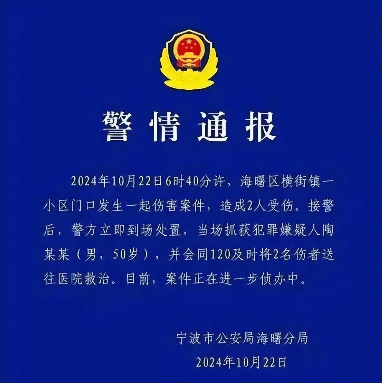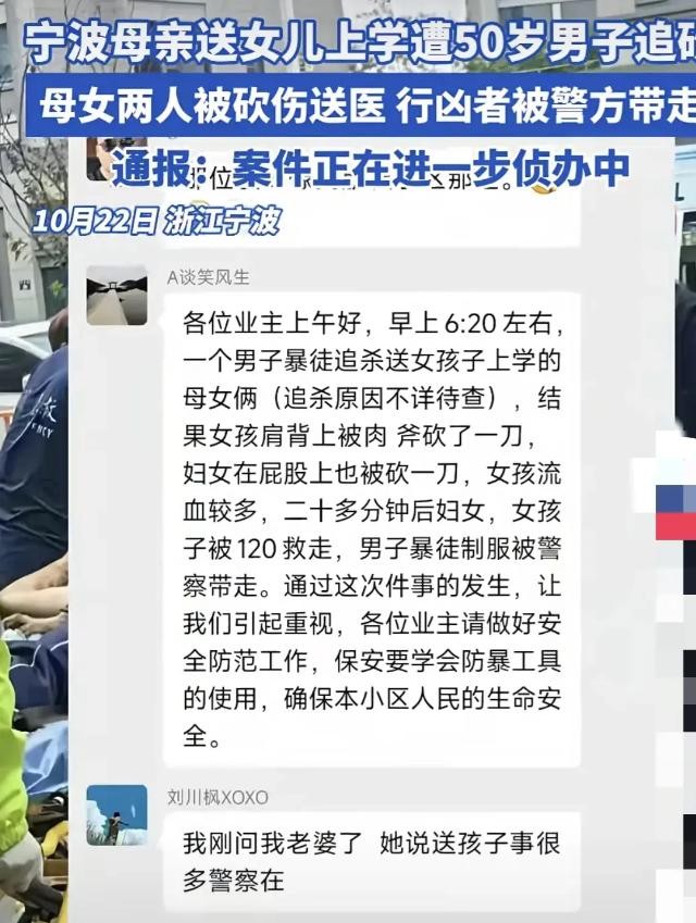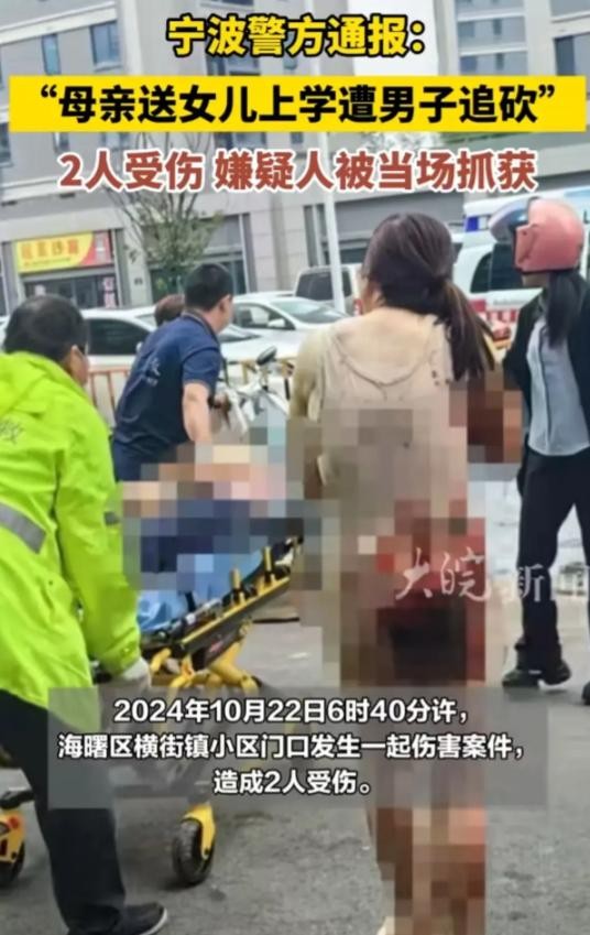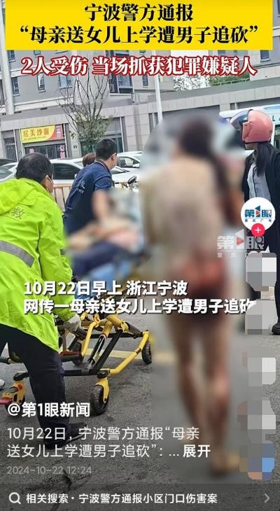来源于 第1眼新闻 2024年10月22日 12:24 宁波警方通报 "母亲送女儿上学遭男子追砍"