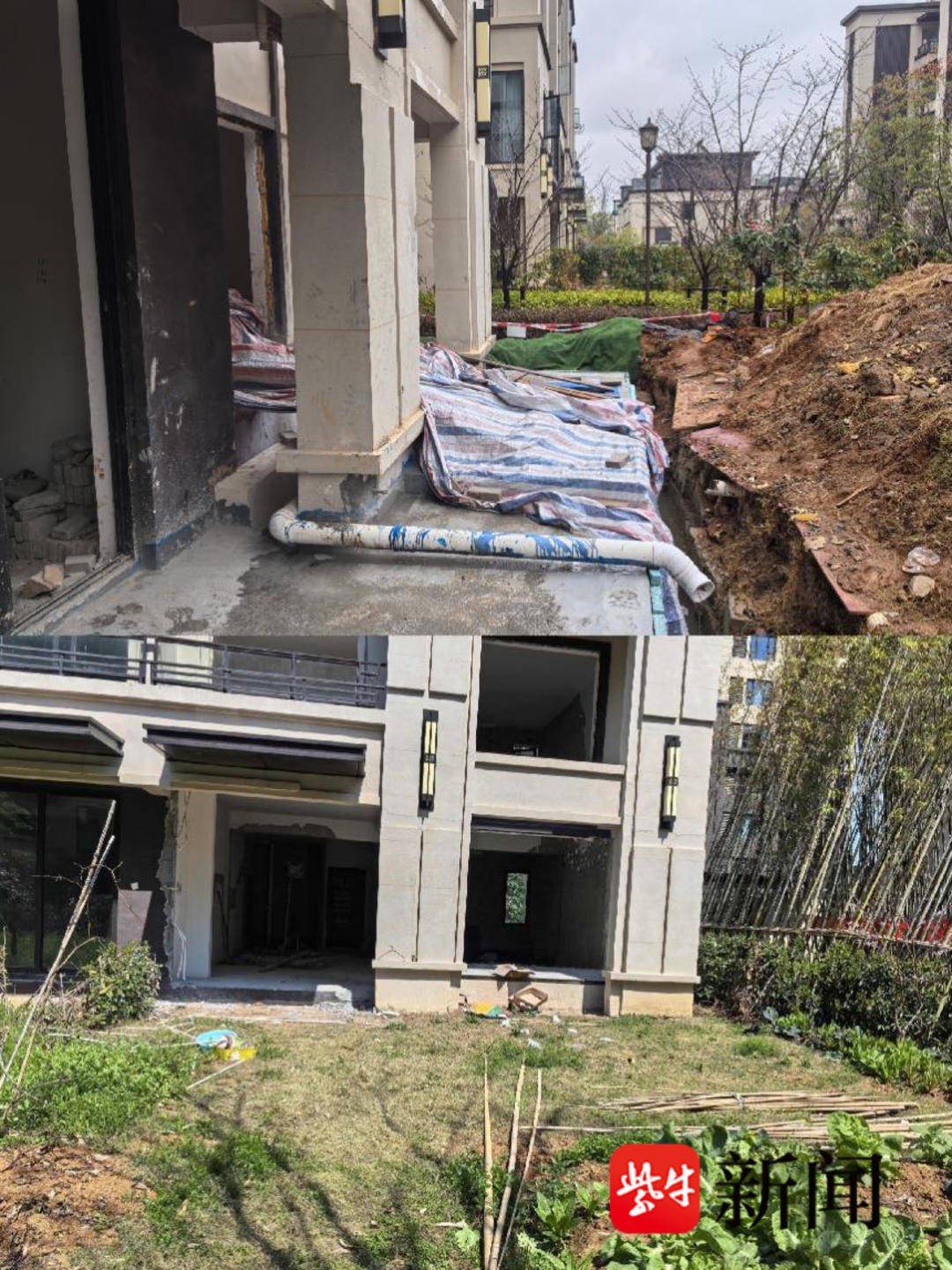 上为涉事房屋 下为同一小区其他房屋 受访者提供