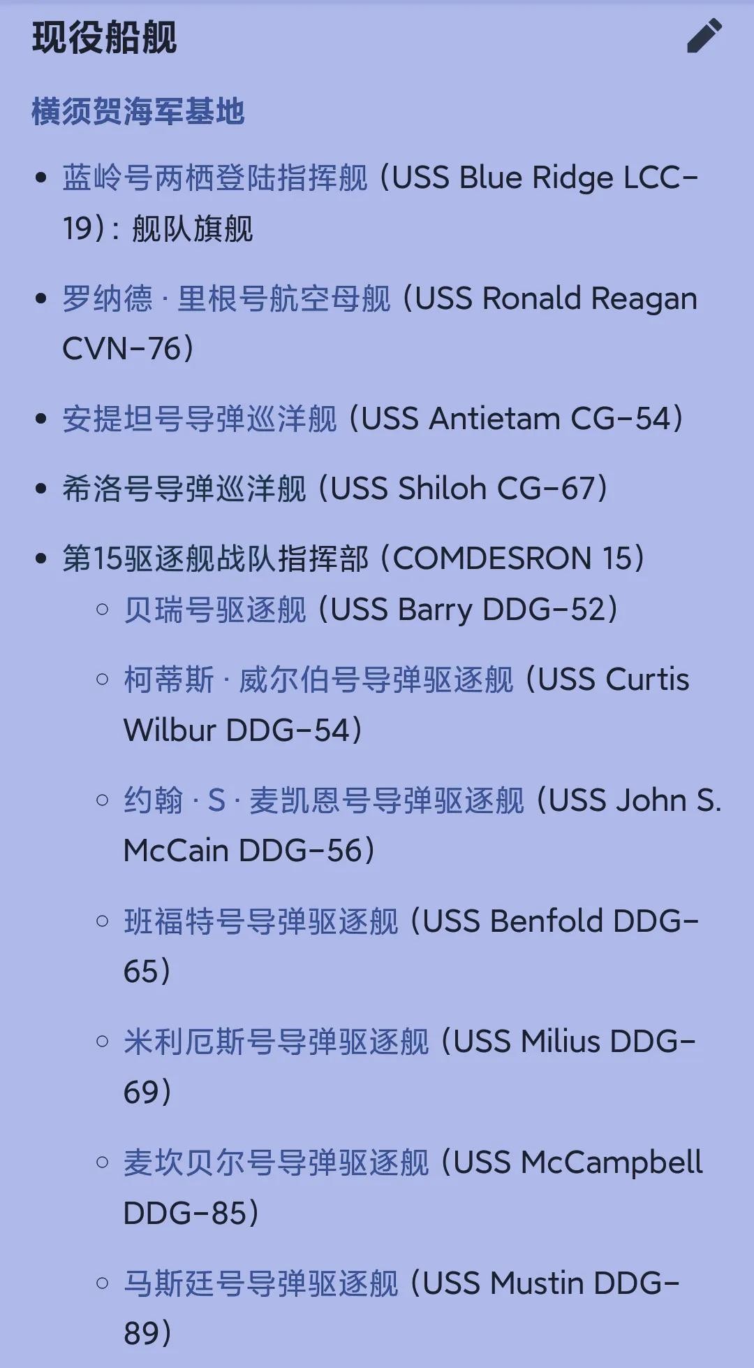 第七舰队目前拥有的驱逐舰主要包括以下型号: