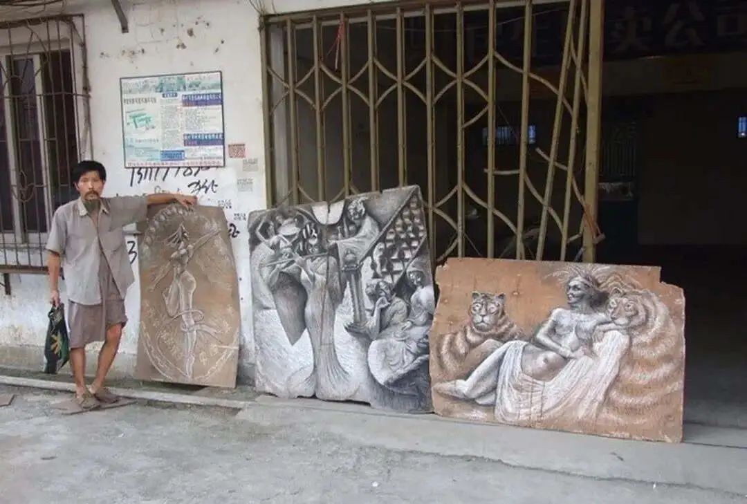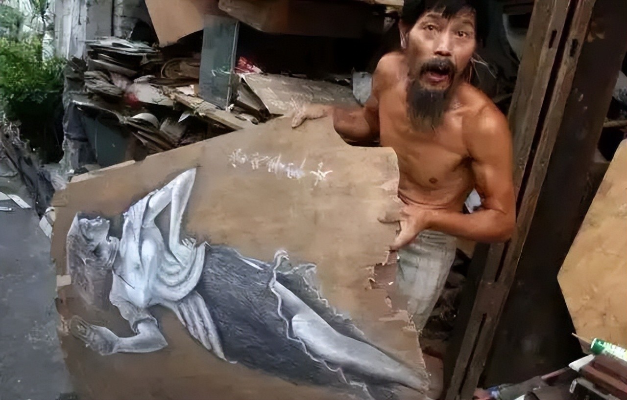 正是这种单纯的坚持,让他在一次偶然中被发现。2008年,一位网友无意间路过徐荣发画画的地方,被他用破旧木板创作的绝美画作震撼,拍下照片并发到了网上。帖子迅速发酵,媒体蜂拥而至,纷纷报道这个“街头疯子画家”的故事。称他为“中国的毕加索”。