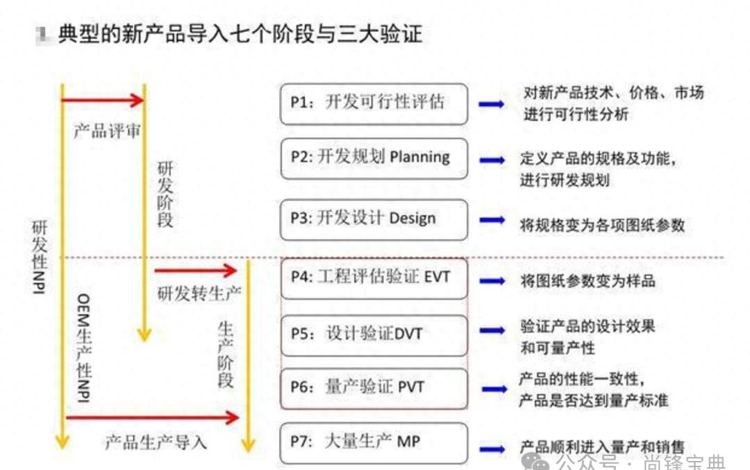 NPI整体分为五个阶段:Planning(规划阶段)、EVT(工程验证与测试)、DVT(设计验证与测试)、PVT(生产验证与测试)。接下来,我们逐个了解这些关键环节。