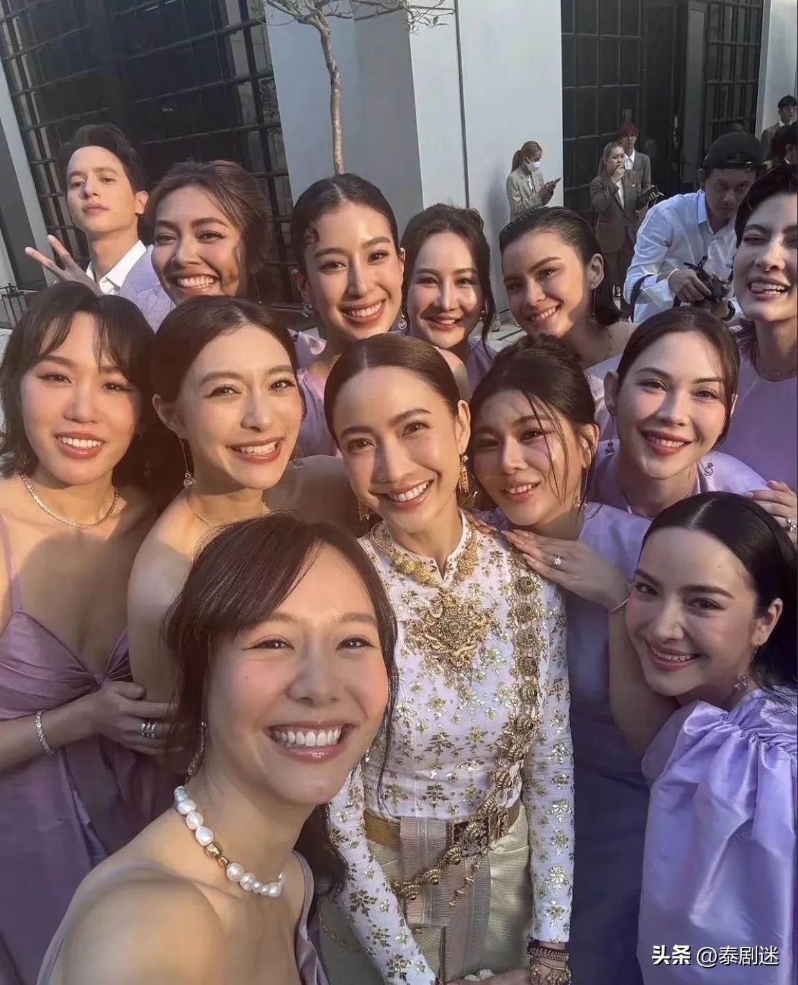而在这场婚礼的背后,也有着深厚的友情支持,众多的泰娱女星作为伴娘参加了Taew和Nai的婚礼。