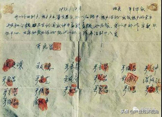 安徽省凤阳县小岗村18位农民签下“生死状”
