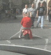 你想干嘛!我看个手机也不行嘛!赔我车!