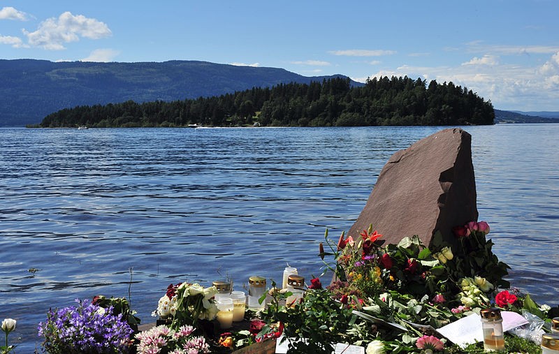 一个多小时后,他伪装成警察来到奥斯陆附近的于特岛,发出信号要求一群参加夏令营的青少年聚集在他周围,然后突然从袋子里取出多支步枪和手枪,向人群无差别射击,枪击持续了大约一个半小时,造成69人死亡,32人受伤。姗姗来迟的警察到来后,布雷维克抛下武器被捕。
