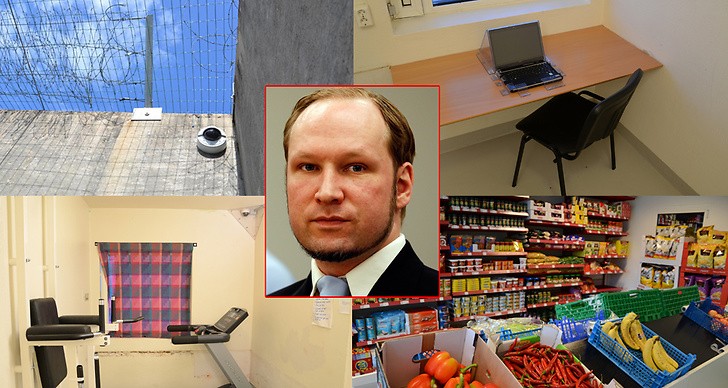 布雷维克拥有三个房间,分别是卧室、办公室和健身房,配有液晶电视、打字机、电脑(不能上网),但不被允许与其他囚犯共用监狱的公共区域,因为他极有可能遭到袭击,所以需要受到保护。