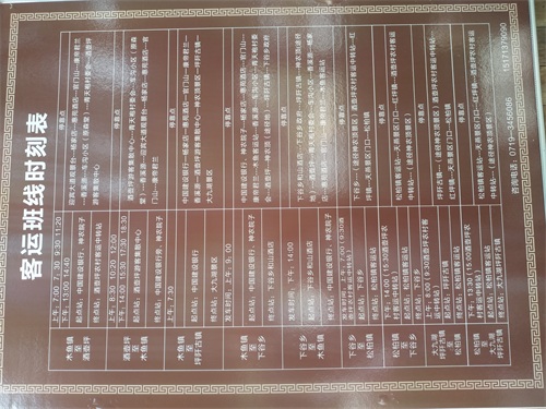 1.出行方式:宜昌长途客运站购买宜昌至大九湖客车,100元/人,因多是盘山公路,车程大概6个半小时。听说宜昌至大九湖的客车只有旺季有,一天两班,发车时间为9点40、12点30。大九湖返程游客建议提前联系司机预约车位,留一个司机电话,供大家咨询:13507209302。