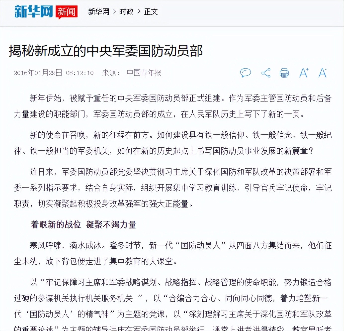 但国防动员部却并非国家行政机构,其是在2016年军改的过程中所设立的军事机构,是直接隶属于中央军委管辖的15个直属职能部门之一。