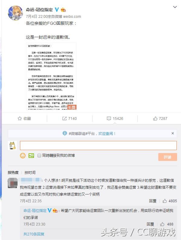 昨天FGO官博一则道歉声明在FGO玩家中引起了轩然大波。