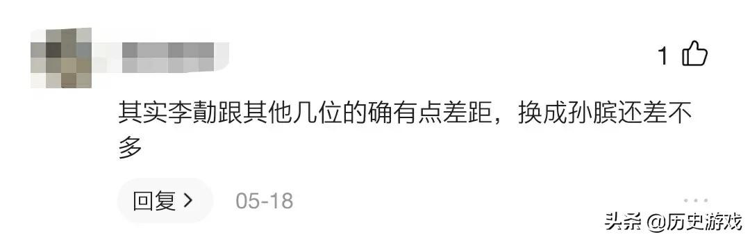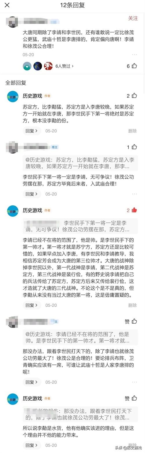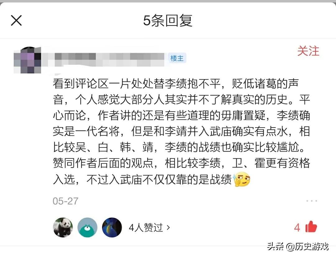 有支持作者的,认同李勣比武庙十哲中的其他人差一些。还有一些认为李勣不水的,但都是说李勣的功劳大,或者就像上面倒数第三张图中,楼主所言认为除了李世民和李靖,大唐就属李勣最强,忽视了或者不知道苏定方等人比李勣更强。