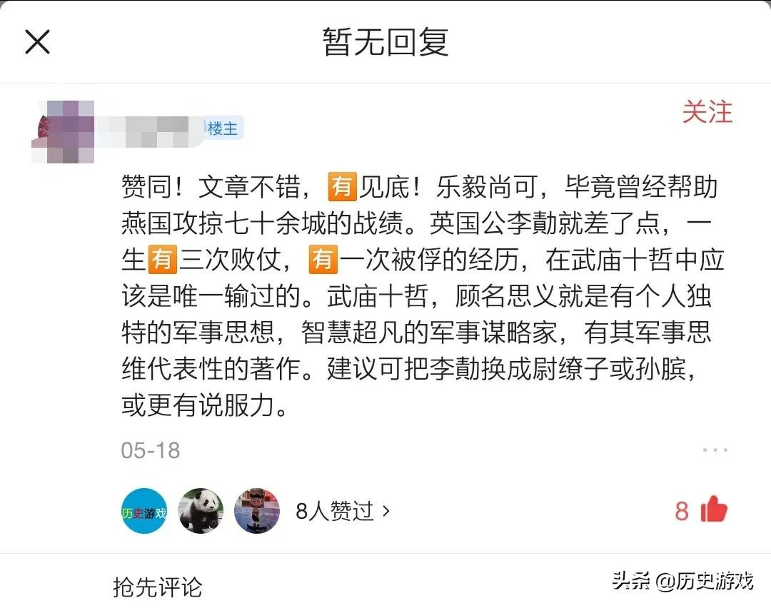 在《再论唐代武庙十哲,为什么乐李二人水(上)》和《再论唐代武庙十哲,为什么乐李二人水(中)》中我根据评论区的一些评论,再次论述了为什么诸葛亮合格,乐毅水的原因。