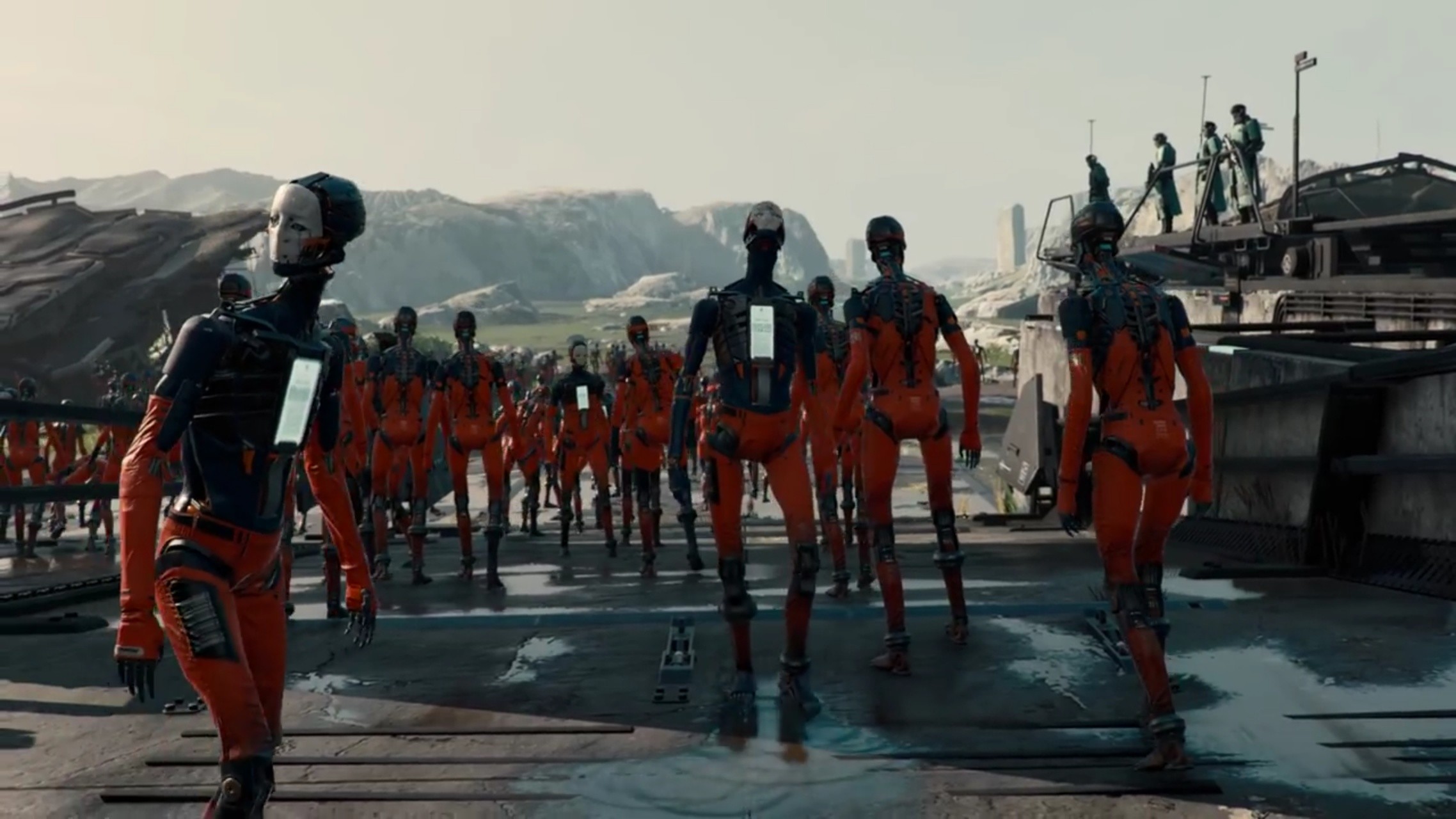第一幕讲述了主人公醒来,发现自己被改造成了机器人,一脸懵逼,和其他机器人被人类奴役,然后来了两个神秘人解放了他们。