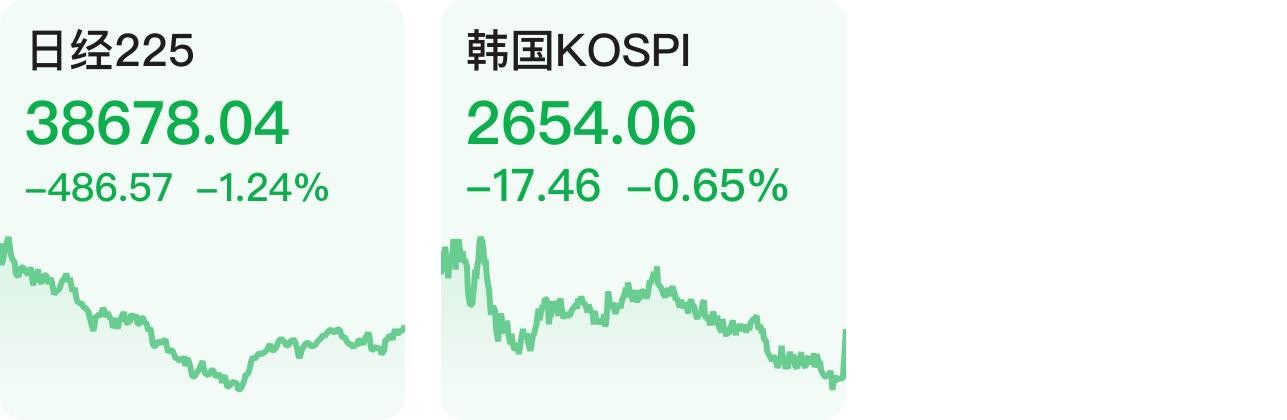 日经225指数跌1.24%,韩国KOSPI指数跌0.65%。