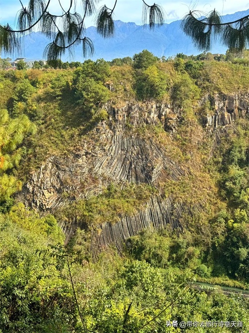 数十米长的玄武岩六边形“石柱”,非常壮观,在黑鱼河观景台拍摄。