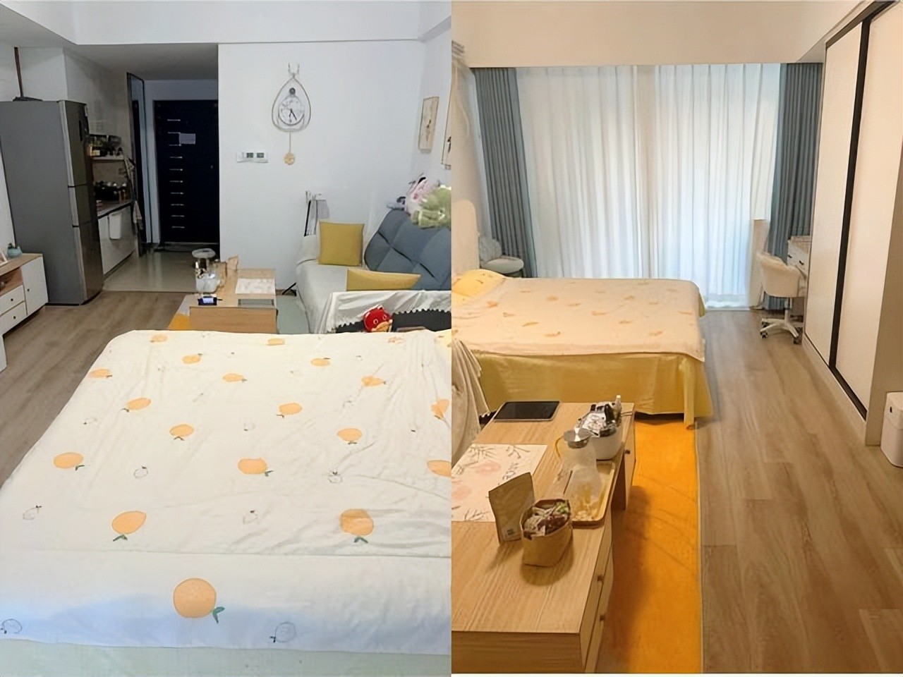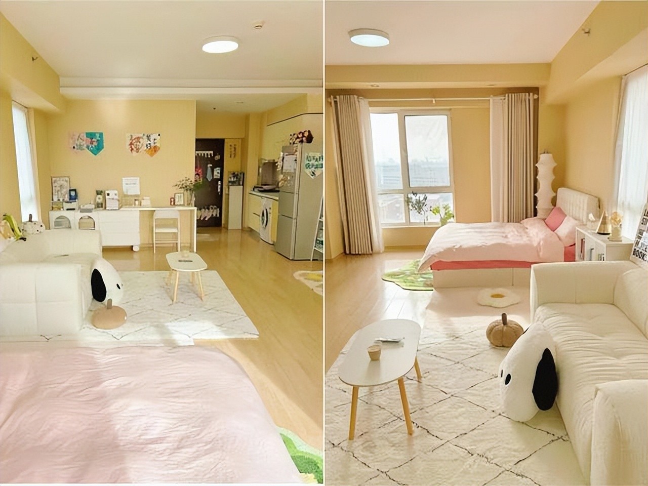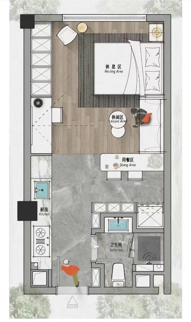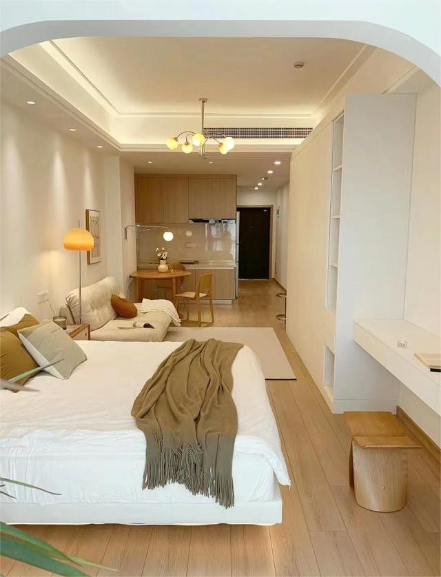 可以通过后期装修改造成一室一厅的格局,也有一些公寓是挑高的户型,可以改造成上下两层。