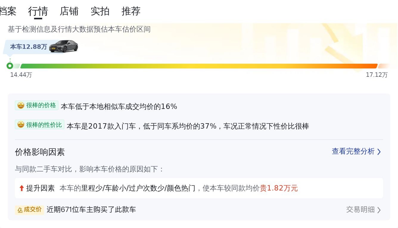 12.88万的 2017款奥迪A6L黑色7万公里0过户值不值?