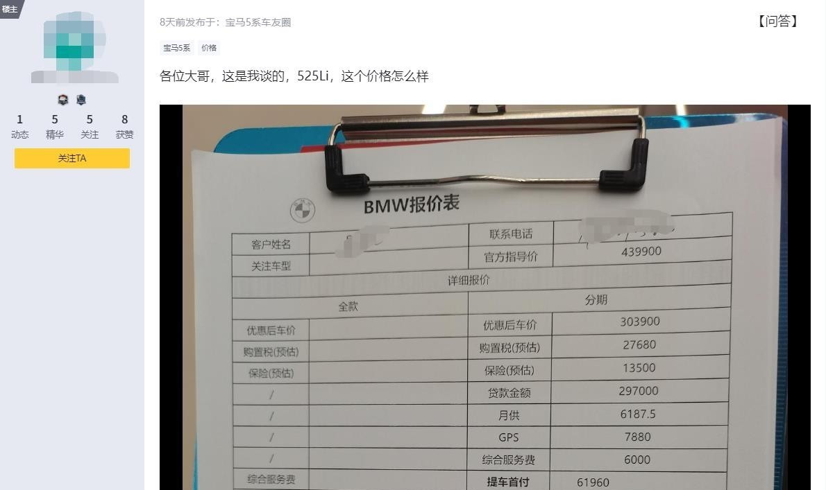 最后,咱再来算算账。30万左右的裸车价,加上税费保险啥的,总价不到36万,首付也就6万多,月供6000多,四年还清。 这么算下来,对某些人来说,或许真的负担得起。当然,具体能不能接受,还得看个人经济情况。 但是不可否认的是,宝马5系的入手门槛确实降低不少了,想体验豪华品牌轿车的梦想,现在离你更近了!这30万的宝马5系,你心动了吗?