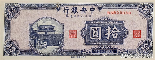 一九四五年,第一次印制了十元纸质的东北银行券。