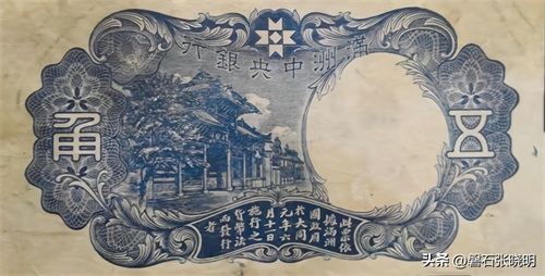 “满洲国”中央银行发行的五角纸币的背面就是辽宁沈阳的“满洲国”中央银行造币厂影像。