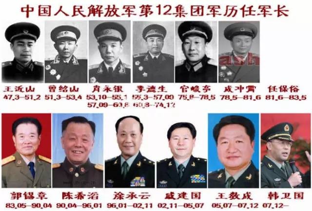 第12集团军的前身是第二野战军第六纵队。12军是刘伯承元帅非常信任的一只主力部队。在“挺进大别山”、“淮海战役”、“渡江战役”中表现十分抢眼。特别是该军下属的36师在1948年7月一举攻克襄阳古城,生擒特务头子康泽,被授予“襄阳特功团”光荣称号。1952年,12军参加了抗美援朝战争,在“上甘岭战役”中,和15军一起,坚守阵地,打退美军一次又一次的进攻,从此闻名世界。第12集团军拥有赫赫有名的“百将团”(步兵第36师第106团),解放军名将陈锡联、谢富治、王近山、曾绍山均出自该军。第31集团军