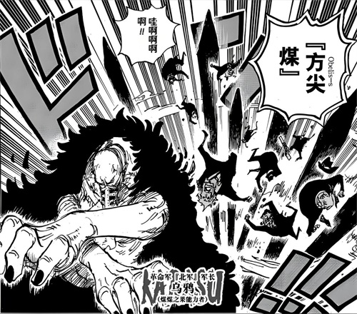 煤煤果实,果实主人是革命军北军队长乌鸦。能力者可以变成煤灰,煤灰可以组成各种不同的形状,从而发挥出不同的功能,比如刀剑、会飞行的乌鸦。煤煤果实的属性和斯摩格的烟烟果实很像,推测是烟烟果实的上位。