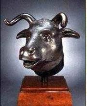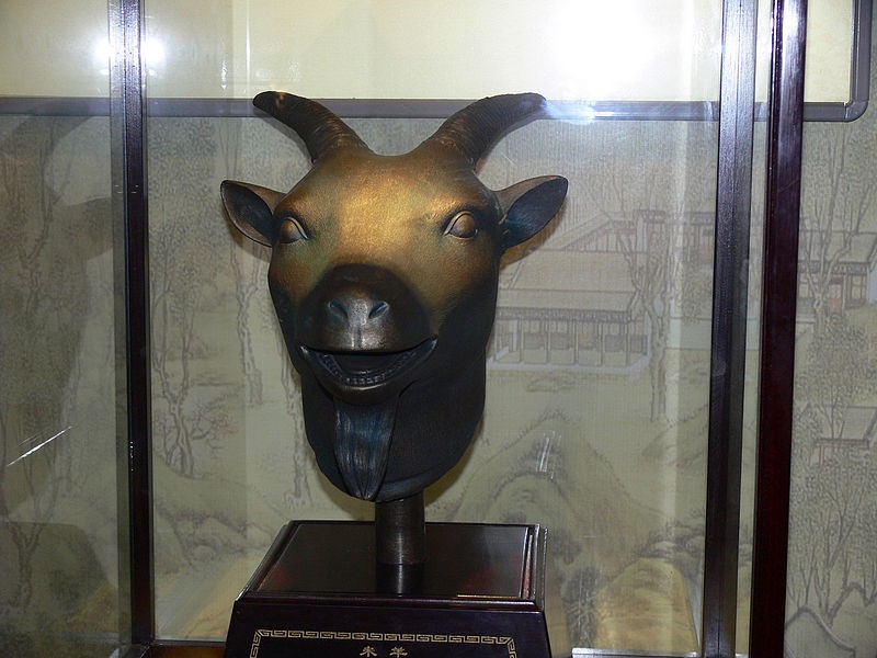 圆明园十二生肖兽首铜像原为外的喷泉的一部分,是清乾隆年间的红铜铸像。1860年英法联军侵略中国,火烧圆明园,并且抢掠了十二生肖兽首及其他众多的圆明园文物,兽首铜像开始流失海外。