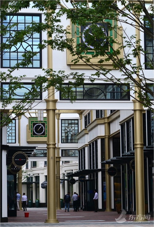 奕欧来上海购物村占地55,000平方米,由三栋面湖而立的新月型建筑构成,整洁优雅,彷佛一个奢华的欧式度假园区。穿越林荫道,人们就能够欣赏到源于上世纪二十年代遍布于纽约、巴黎、米兰、维也纳及上海的装饰艺术风格建筑。这里每一条街道都以一位装饰艺术主义领袖的名字命名。