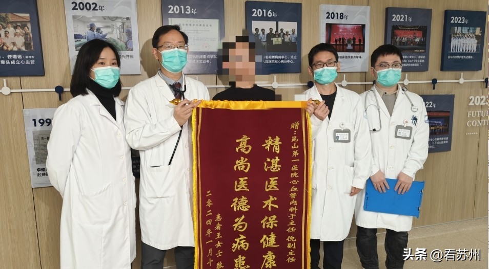 1月12日一早,市民王阿婆的家人为市一医院心血管内科送去一面锦旗。原来日前,72岁的王阿婆因走路出现剧烈的胸痛来到市一医院就诊,经过检查,发现胸痛的“主凶”是主动脉瓣二叶畸形伴中重度主动脉瓣狭窄。考虑到王阿婆高龄,瓣膜病变复杂,心血管内科联合麻醉科、心胸外科等进行多学科讨论,制定了详细的手术方案,在苏州专家的指导下进行了经导管主动脉瓣置换术(TAVR),目前恢复良好,即将出院。这也是昆山市一医院继去年10月完成苏州县市级医院范围内首例TAVR手术后,成功完成的第2例该手术。昆山市一医院心血管内科主任于宗良介绍,相较传统的开胸手术,TAVR手术仅需通过微创介入途径经导管完成主动脉瓣置换术,为主动脉瓣膜病变治疗提供新途径。