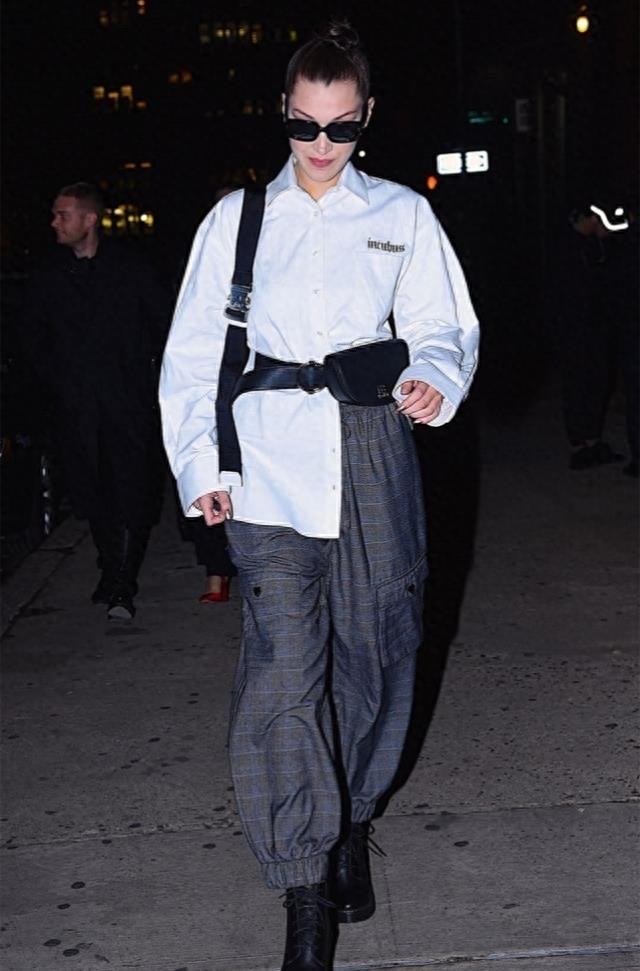 卡罗琳以白衬衫和黑裙子的组合展现了她端庄性感的形象。在日常休闲场合,白衬衫也能展现出别样的魅力。贝拉选择了搭配腰包和露出衬衫下摆的设计,