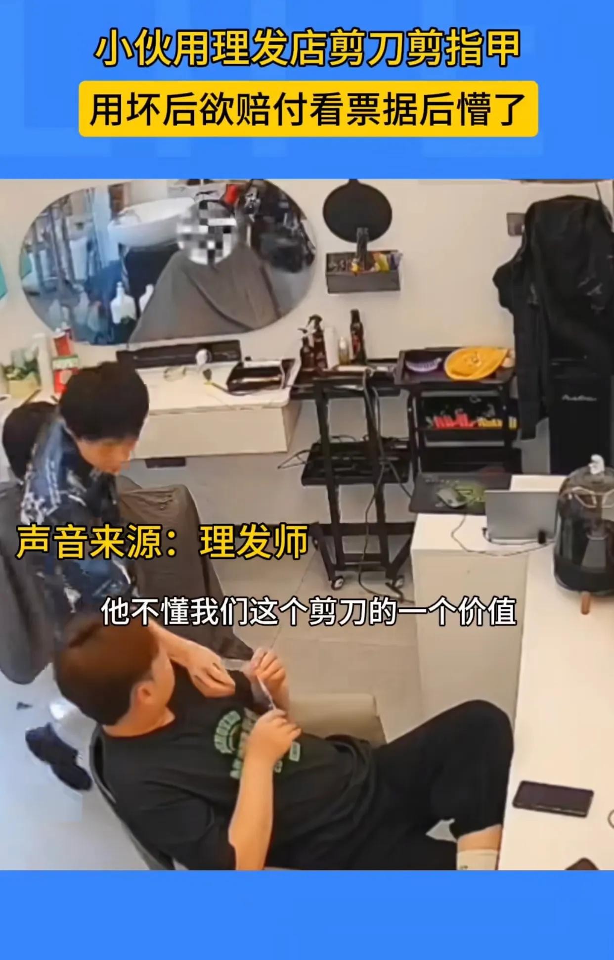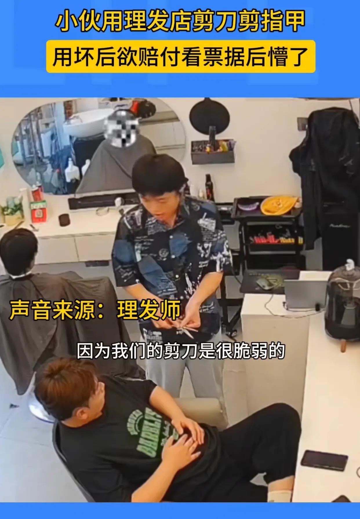 剪刀门”事件追踪:小伙理发误操作,1800元高档剪刀遭殃