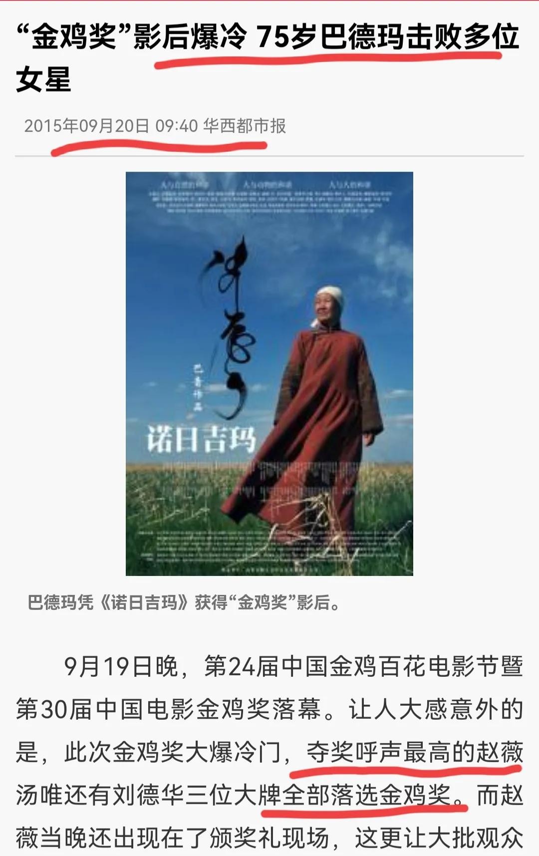 而当时众望所归的最佳女主角最意外地颁给了电影诺日吉玛的女主角,75岁的蒙古族女演员巴德玛,而说起演员巴德玛,无论是从影响力,粉丝流量和人气程度来看,都被赵薇狂甩几条街,如今却收获影后桂冠,这令赵薇心里非常不舒服。