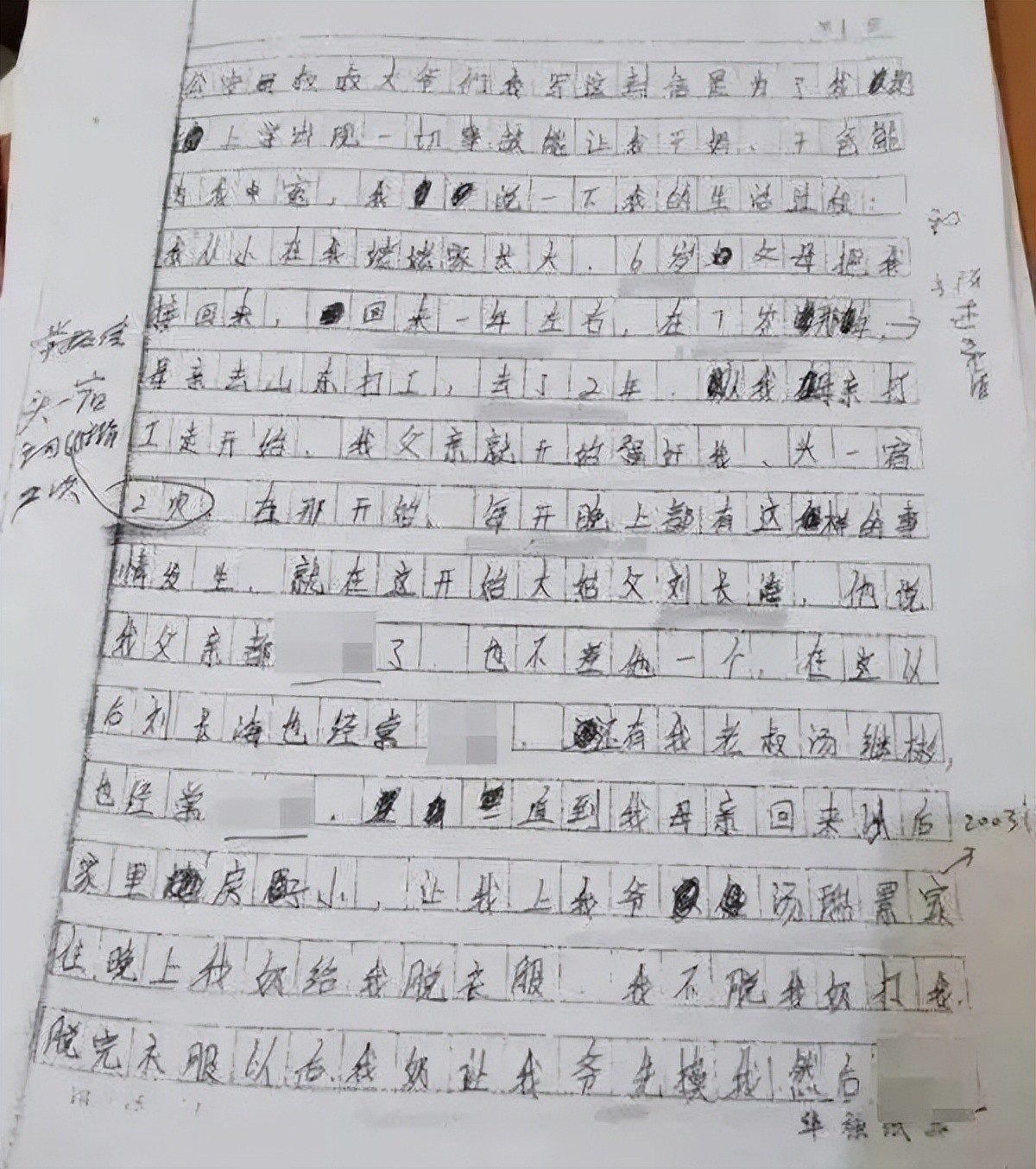 信中写到:她从8年前开始,就持续遭到亲生父亲、爷爷、叔叔、姑父、邻居等多人强奸,并且母亲和奶奶也参与其中收取费用。