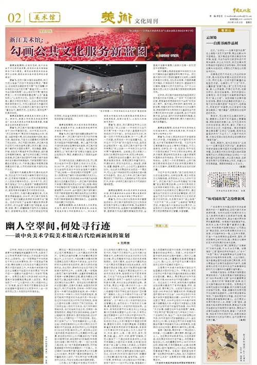 在新时代,浙江美术馆应进一步加强与社会各界的合作,推动更多优秀传统文化与当代艺术的融合,为公众提供更丰富多元的美术文化服务。观点建议:浙江美术馆在推动中华优秀传统文化的创造性转化和创新性发展方面取得了一定成果,但仍需加强与社会各界的合作,深化美术馆与公众之间的互动,进一步提高展览的质量和公共教育服务的水平。此外,浙江美术馆还可以加强与其他美术馆的合作,推动美术馆之间的资源共享,共同打造更具影响力的展览和文化交流项目。最后,浙江美术馆还可以通过数字化手段,提升藏品管理效率,实现更广泛的公共文化服务,让更多人能够享受到美术馆带来的艺术和文化的魅力。读者问题:你认为浙江美术馆在推动中华优秀传统文化的创造性转化和创新性发展方面还有哪些可以改进的地方?