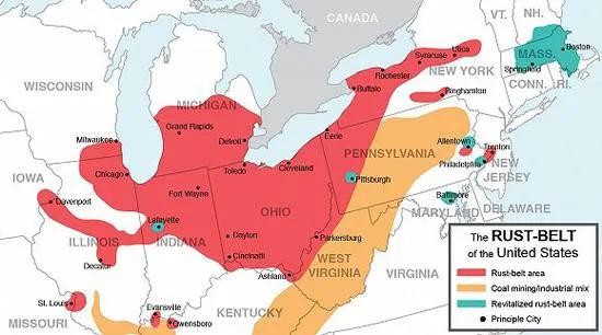 不过自二十世纪九十年代中期开始,美国低端制造业和劳动密集型制造业开始迅速外流,出现工业产业空心化现象。而位于密西西比河流域东北部的美国东北工业区,以及位于其下游的南部工业区,都是以传统制造业为主。在美国制造业外流的进程中,这两个工业区受创最深,经济迅速衰败,成为著名的“铁锈带”。