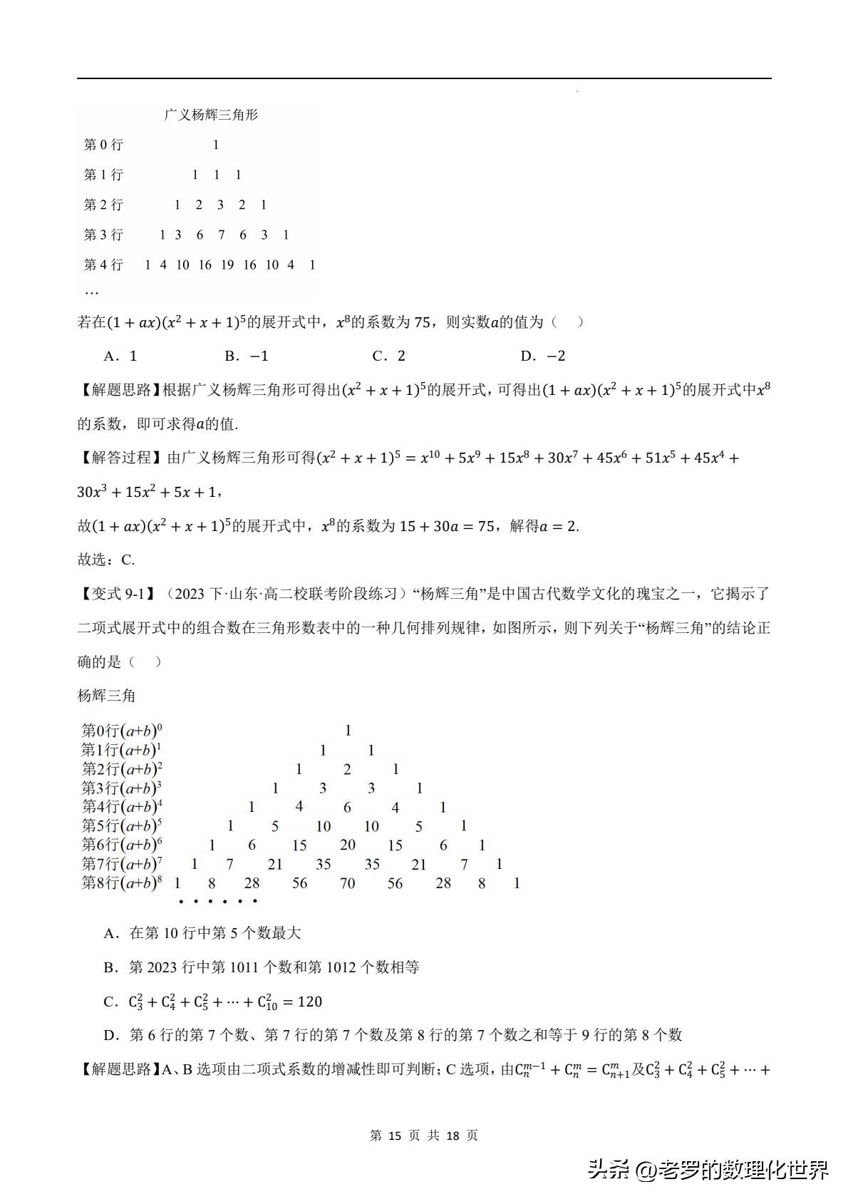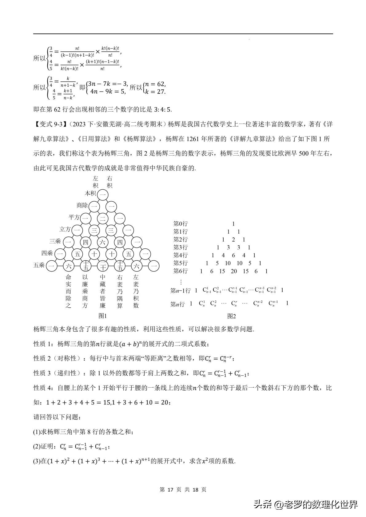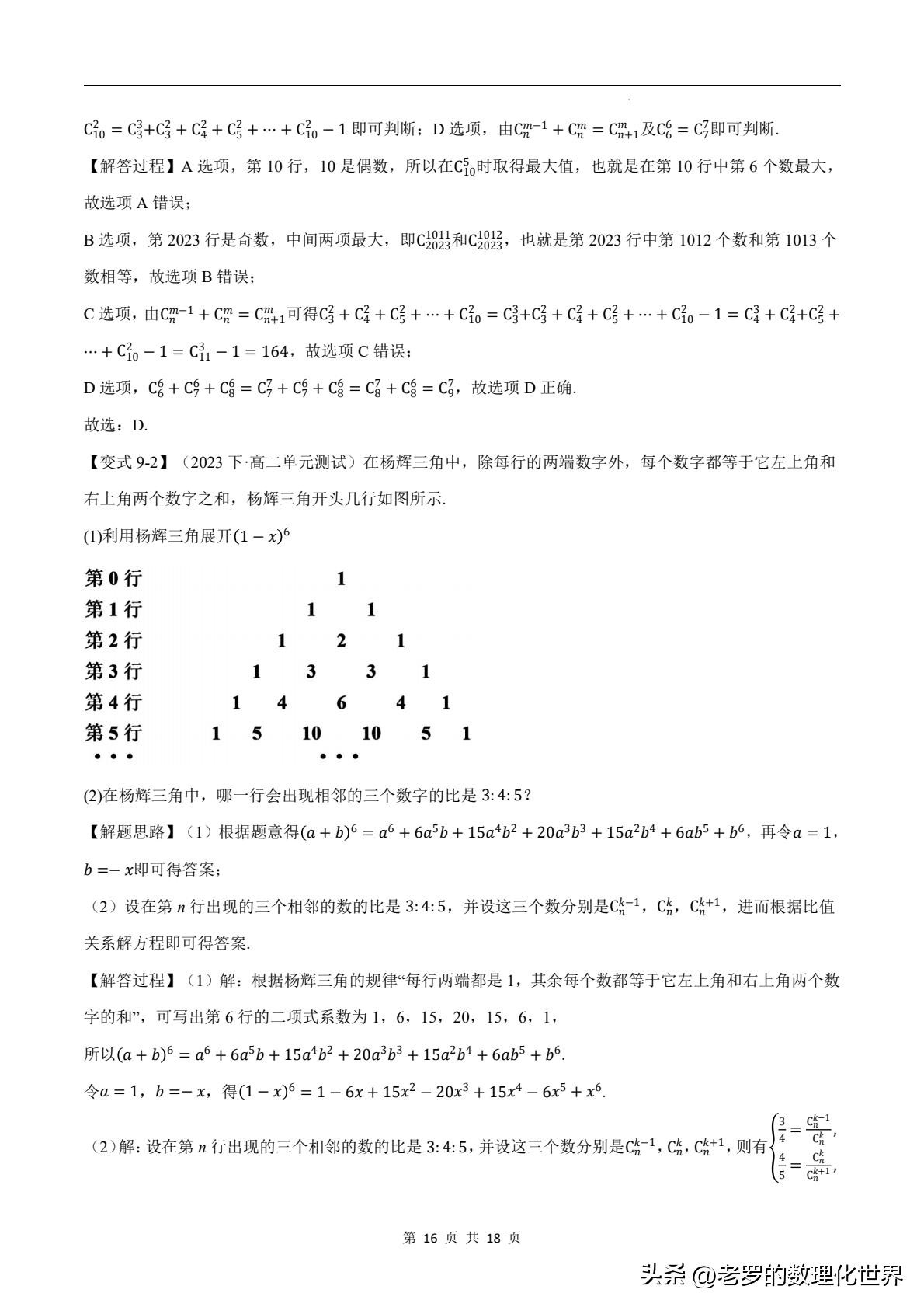 时,运用二项式定理,结合杨辉三角我们就能轻松得出