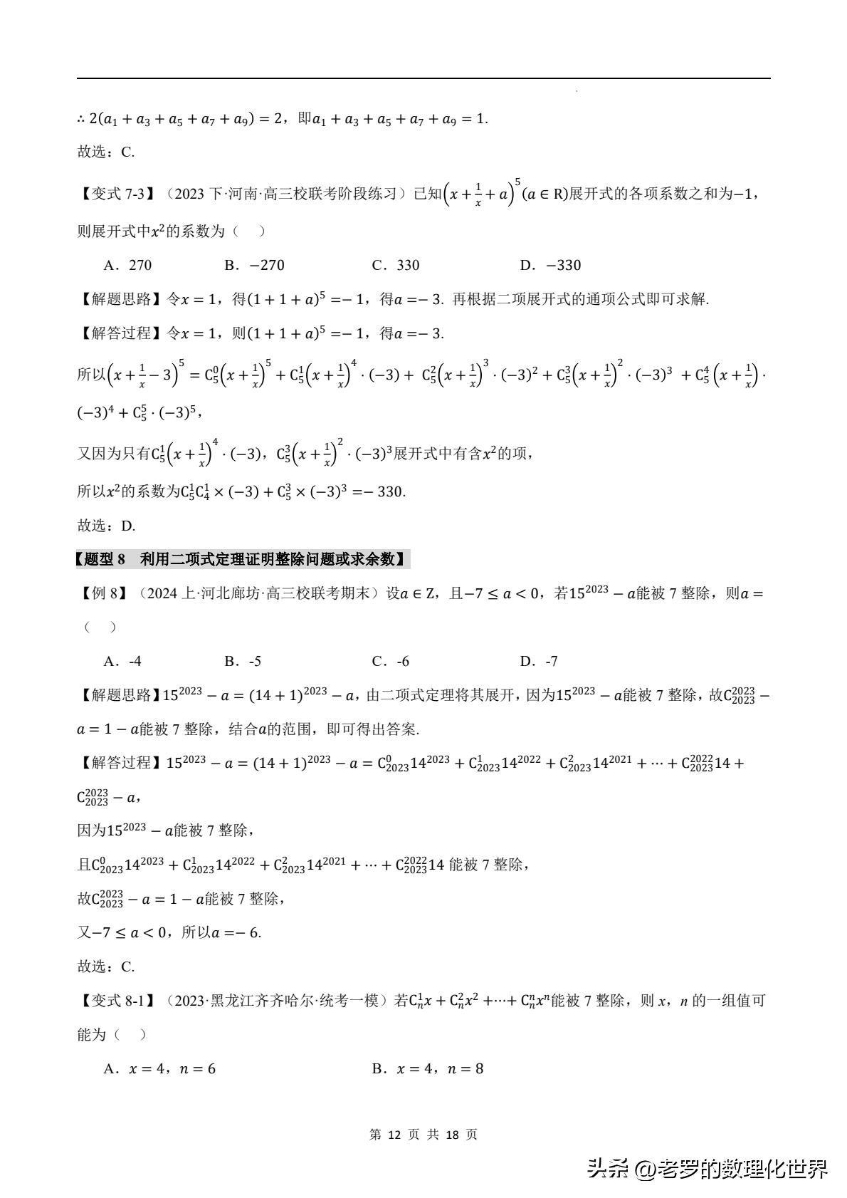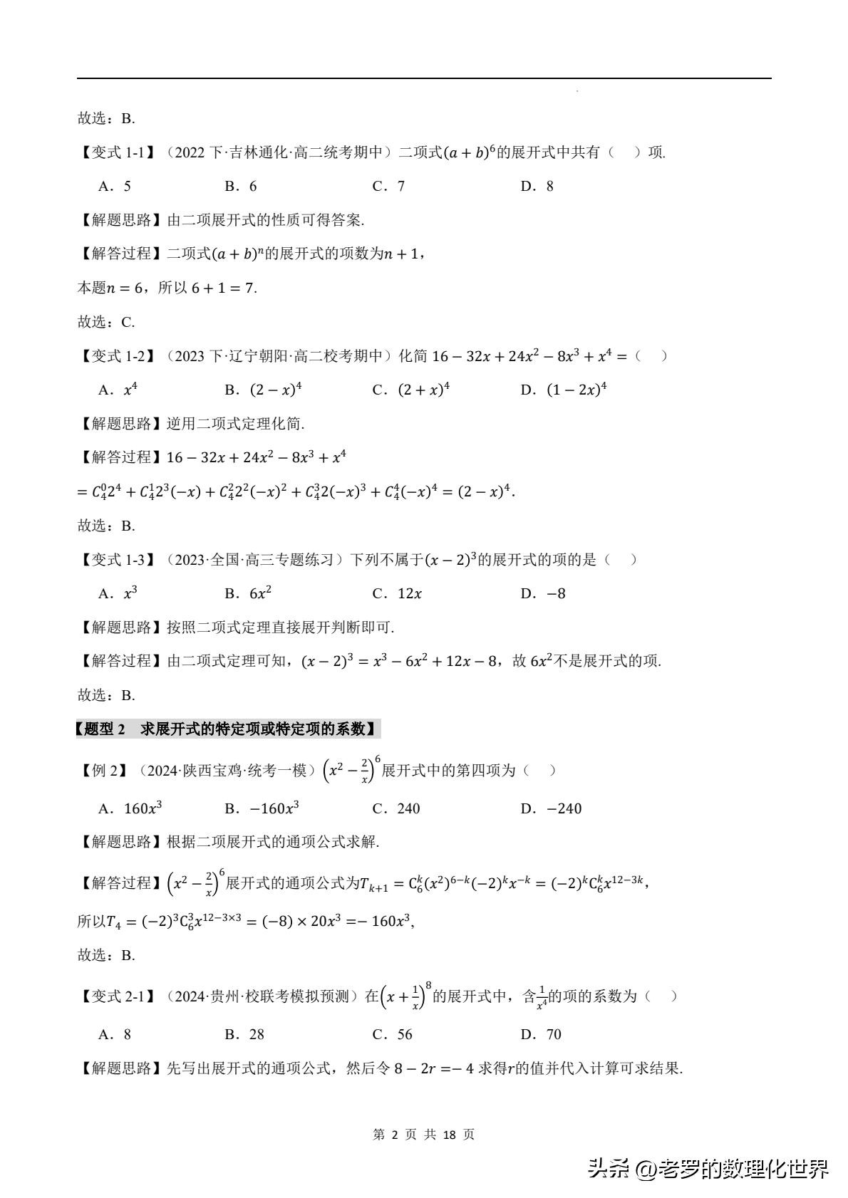 据统计,在各类数学考试中,涉及二项式定理的题目出错率较高。这也从侧面反映出大家对它的理解还不够深入。