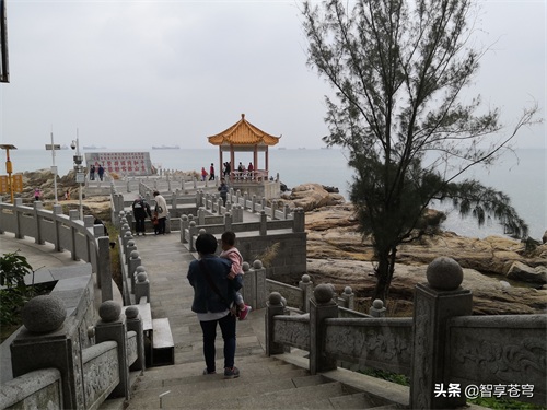 站在坚硬的礁石上,眼前是蓝蓝的大海与天空、白白的沙滩与浪花、红红的碑刻与亭栏、青青的环山与林木,耳边唯有静静的涛声,心胸内顷刻间清净、豁达、安详许多。