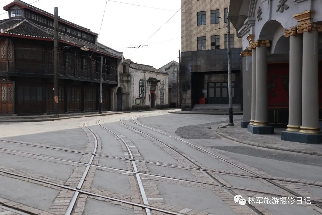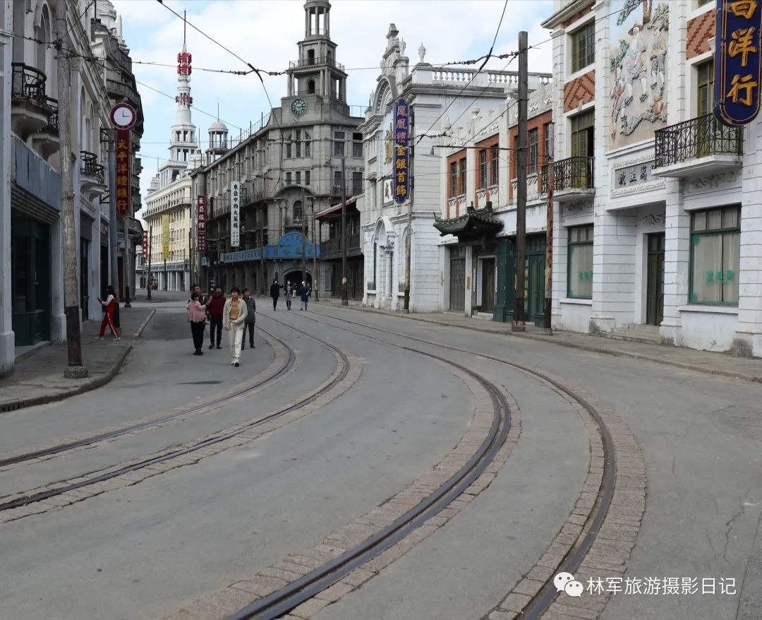 进入乐园内人很少,可能是因为新冠疫情的原因吧!看不到几个人,乐园内的建筑主要是仿古建筑,由三十年代的南京路、欧式庭院、石库门、仓库、教堂、浙江路钢桥等等。这是有轨电车道。