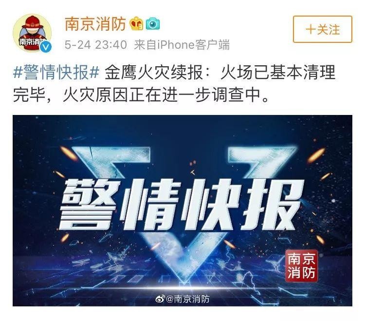 据@南京消防 最新消息:火场已基本清理完毕,火灾原因正在进一步调查中。