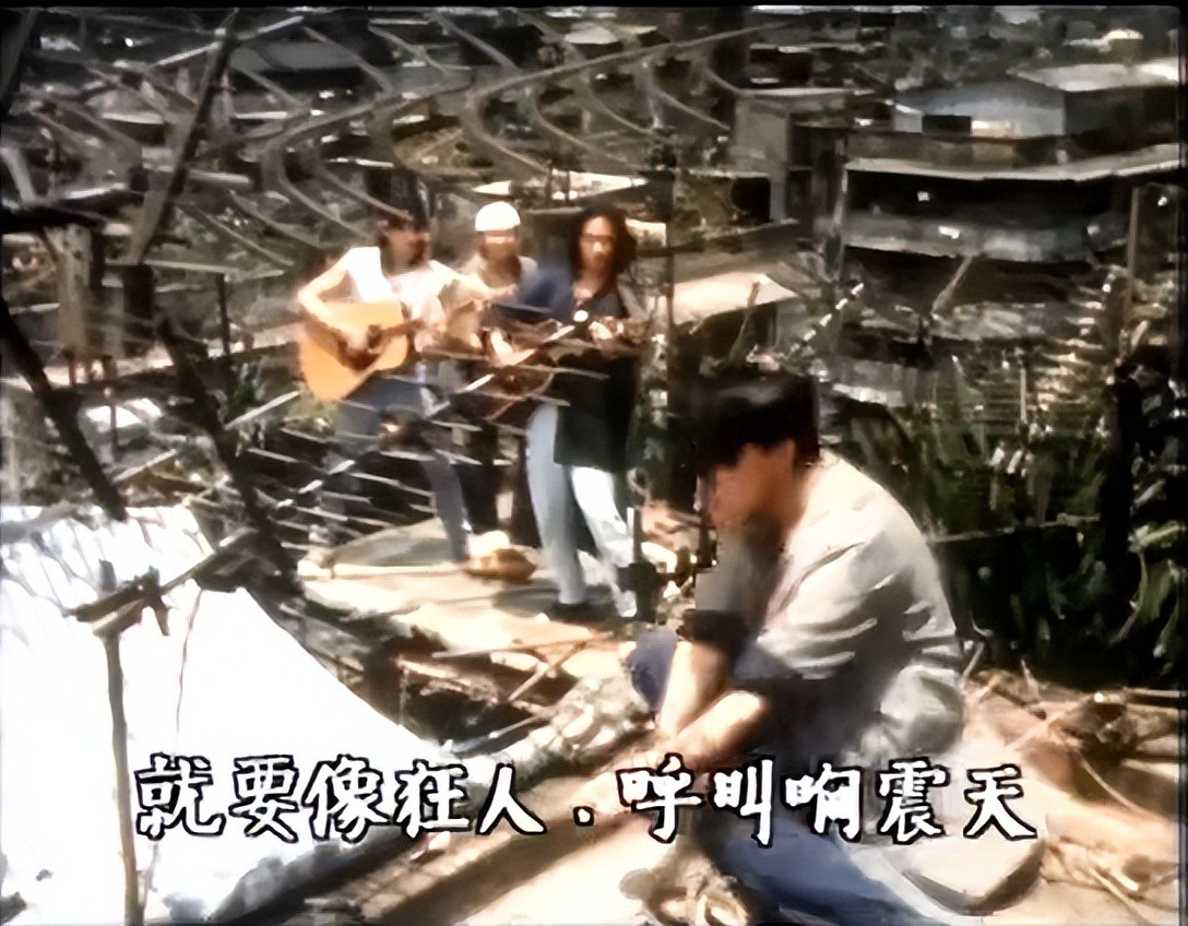 1987年的《小说家族之对倒》,这部只有半个小时的短片,黄家驹占的篇幅可谓比例不小了,开头废墟上的《金属狂人》,街头的《飞跃苦海》,唱了两首歌,对了,世荣在片中饰演一个盲人。