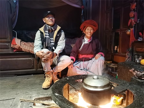 在位于永宁村委会扎实村民小组的鼎雅树屋民宿内,几栋传统的摩梭建筑格外抢眼,创作于嘉靖年间的壁画保存完整,祖母房内摩梭人原始的生活状态成为民宿经营日常,主理人鼎雅鲁汝正在向客人热情介绍民宿内的摩梭文化。鼎雅树屋民宿于2009年开门营业,2020年扩大建设面积,现在,民宿还免费提供大量民族服装供游客拍照使用,通过打造“文化牌”,鼎雅树屋民宿吸引众多游客入住体验,入住率居高不减。“有些客人过来可能住十天半个月,有的甚至住两三个月。在这里可以体验到很多摩梭文化,跟我们摩梭人融为一体,就像自己的家一样。”鼎雅树屋民宿主理人鼎雅鲁汝说。