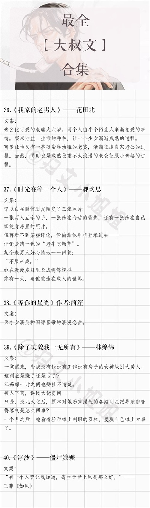 今天推荐40本高质量温馨甜宠大叔文合集,男主清冷矜贵,儒雅深沉,腹黑又温柔,超级甜。