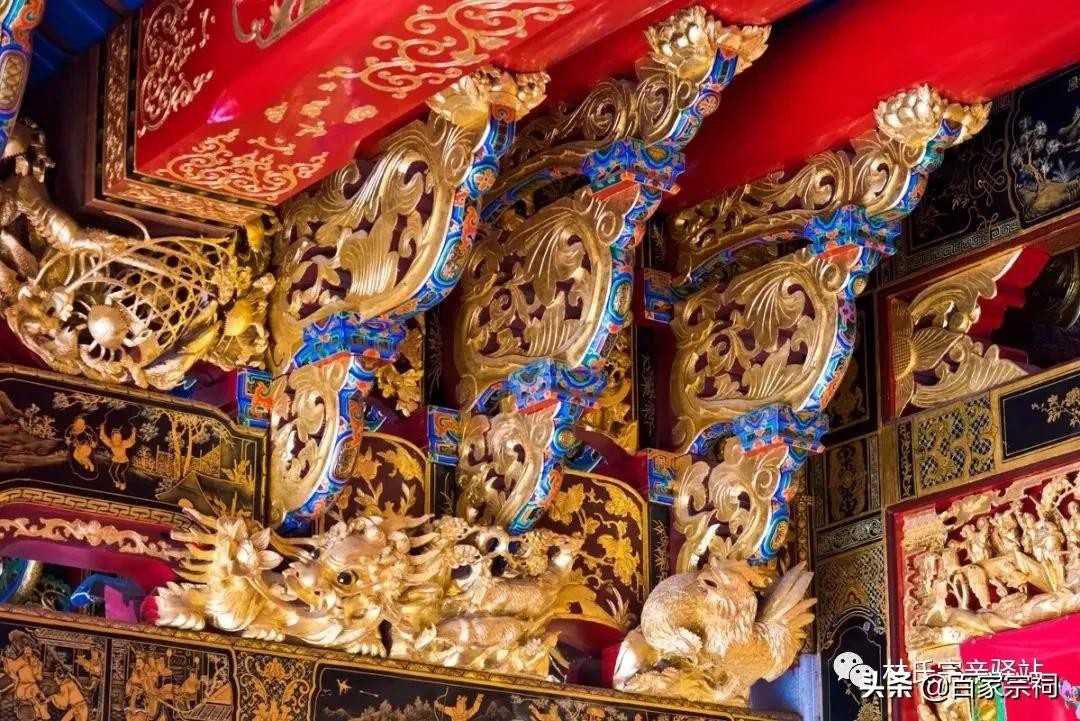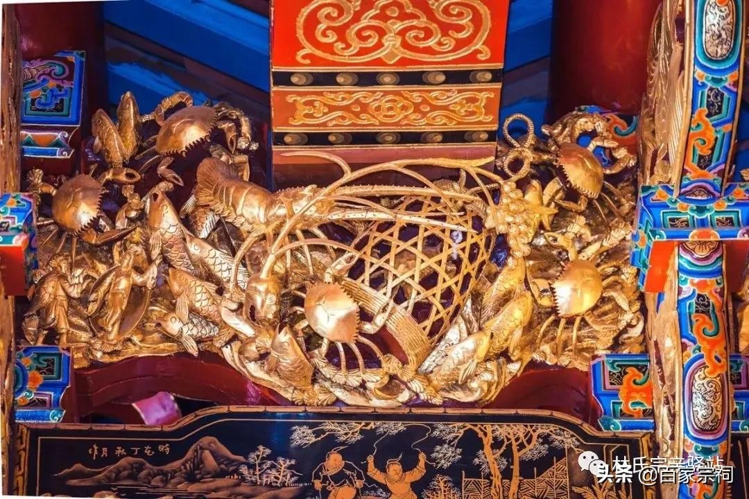 在这些装饰门类中,最耀人心目的是绵福里崇弘公祠承德堂惊彩绝艳的金漆木雕装饰。