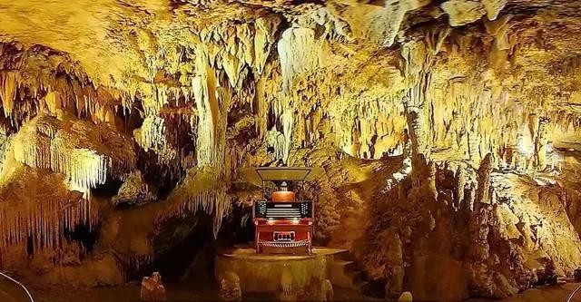 美国维吉尼亚州的鲁睿钟乳石洞是世界上最大管风琴的家。它的面积横跨3英亩,相等于两个足球场的大小,谁家管风琴那么大。原来这是一台钟乳石管风琴,有管风琴式的键盘和洞穴内的钟乳石一起组成的乐器,弹奏时橡皮头套的鼓槌会敲打大小不一的钟乳石,让其发出不同高度的声音,从而产生自然优美的音乐,包括贝多芬的月光奏鸣曲和巴哈的一些前奏曲都曾传遍过洞穴内64英亩地的各个角落。