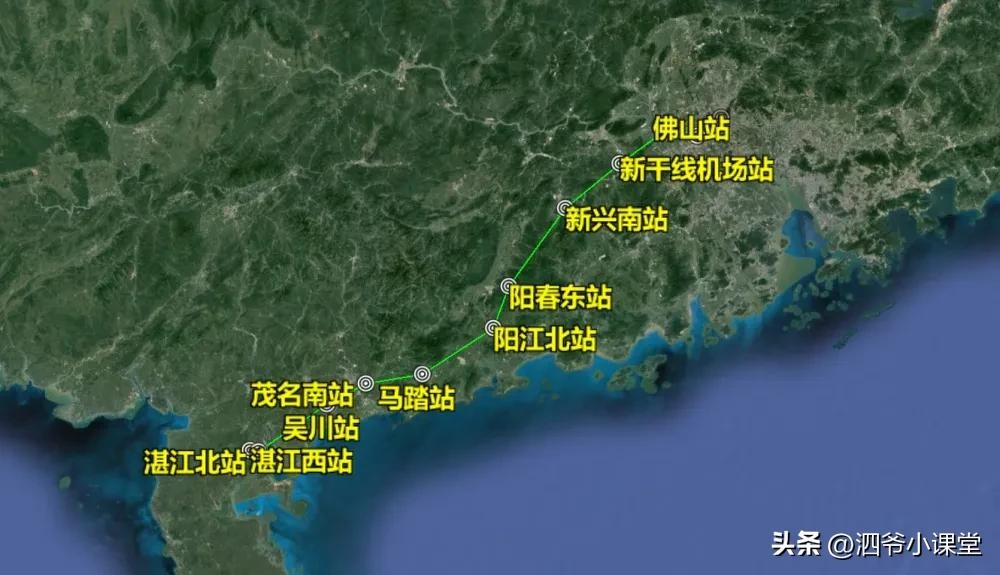 线路从广州站引出,经佛山、肇庆、云浮、阳江、茂名、湛江等市,终至湛江北站。