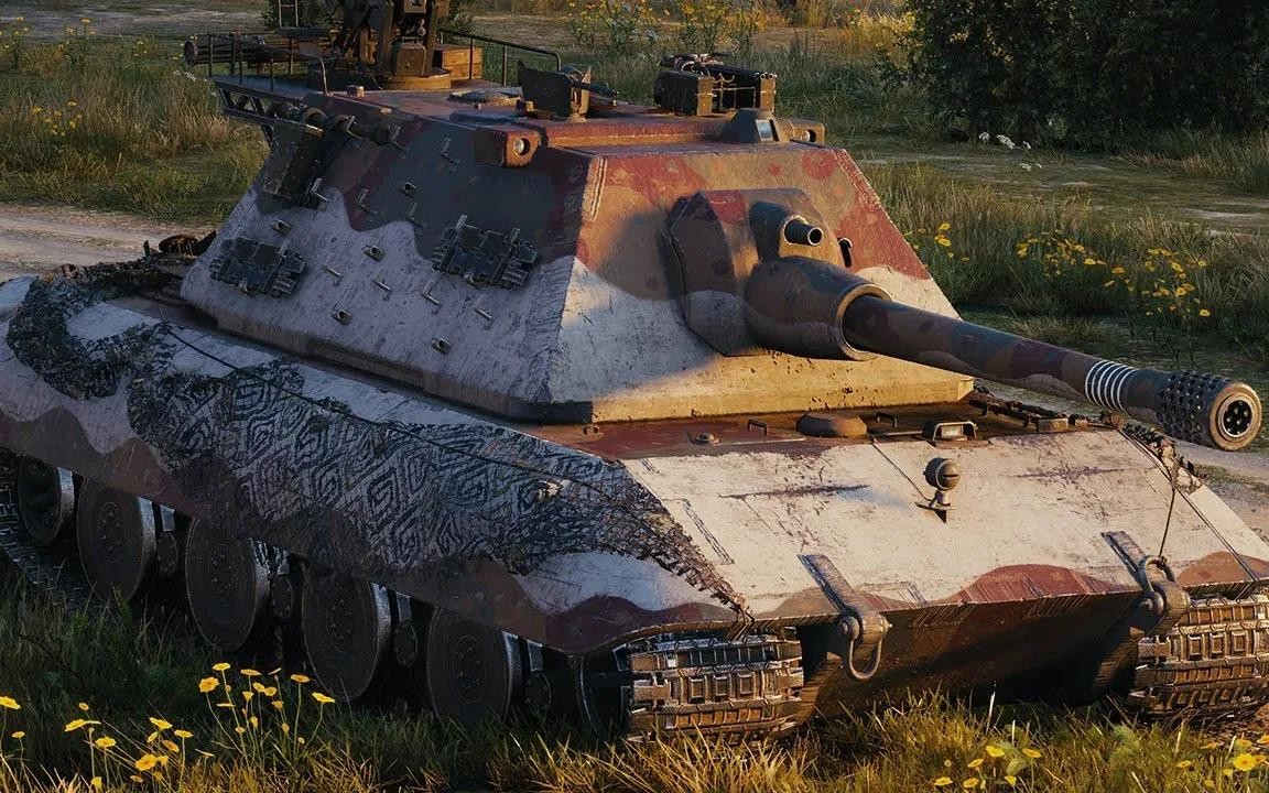 虎王(Tiger II)作为德军著名的重型坦克,火力和防护均属顶尖,但E100的火炮口径更大、防护更强。然而,虎王相比E100在重量和机动性上更为平衡,适合灵活作战。E100在防护和火力上的极端化设计导致其难以在实际战场上大规模应用。
