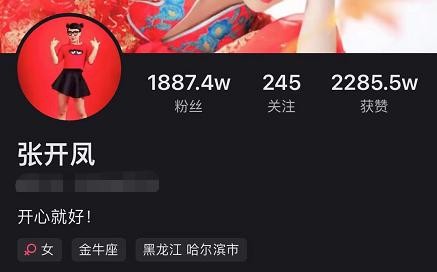 因为张开凤的“死亡摇”太过魔性和牛掰,她也由此收获了不少粉丝,再加上其为人搞笑,嘴里的段子一个接着一个来,所以很快就在某手上收获了一千八百多万的粉丝,俨然是一个大网红了。