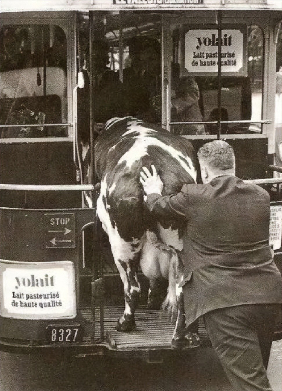 25、19世纪时期,因为拉奶牛的货车装满了,于是主人只能无奈将其推入客车尾部。不过因为体型实在过于巨大,被卡在栏杆中间,无法动弹。