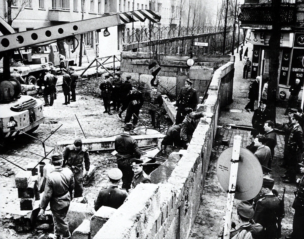 12、正在建造的德国“柏林墙”。德国柏林墙始建于1981年,全长155公里。这道墙将德国一分为二,是德国分裂的象征,也是冷战时期的重要标志性建筑物。1990年6月份,柏林墙被正式拆除。