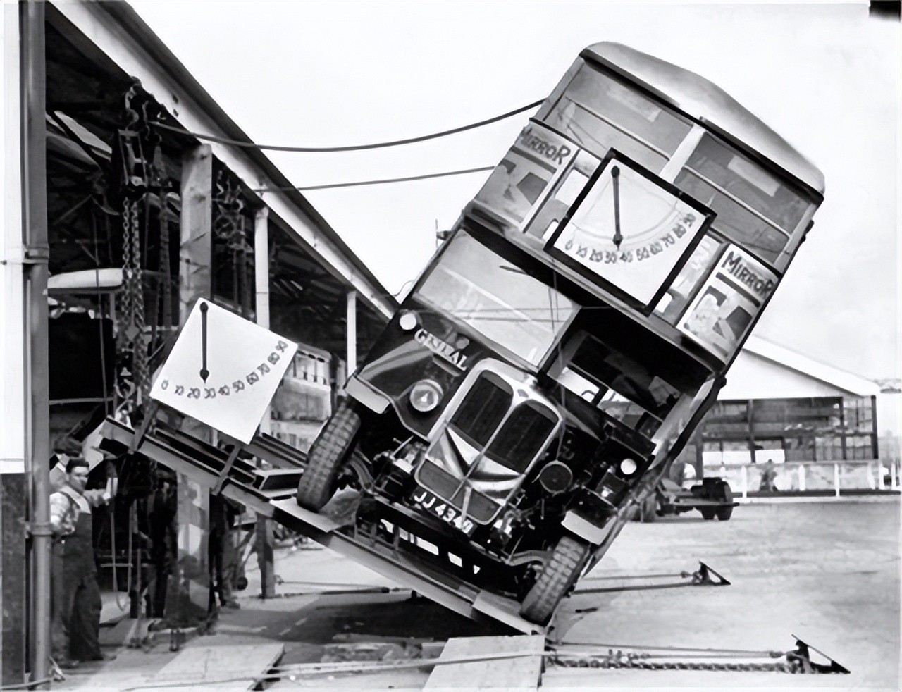27、1933年,英国伦敦巴士的工厂,为了展示自己的双层巴士十分牢靠,便在工厂内做了这个试验,将汽车倾斜到30度,借此来展示它的牢靠性。至今,伦敦的红色双层巴士依旧是当地的一道靓丽风景线。